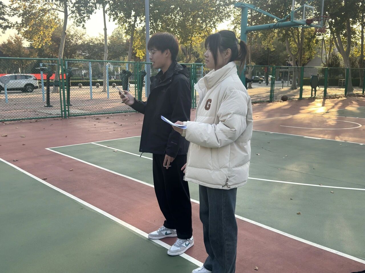活动筹备期间,文体部成员分工明确、细致筹备。从赛场三分点位的精准标注,到赛事流程的优化梳理,每一个环节都力求严谨周全,为比赛的顺利开展提供了坚实保障。活动伊始,负责人向全体参赛选手清晰讲解了比赛规则:赛事采用单轮赛制,每位选手限时一分钟,需在左右45°角、左右0°角、90°弧顶五个标准点位完成投篮,最终按进球总数确定排名。