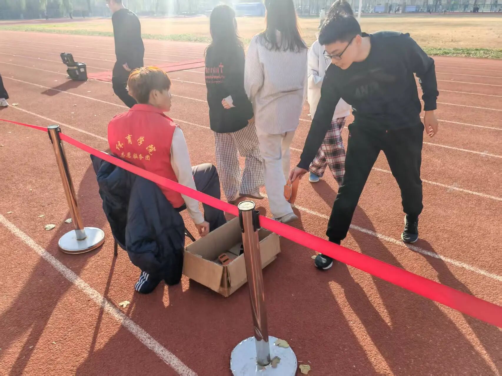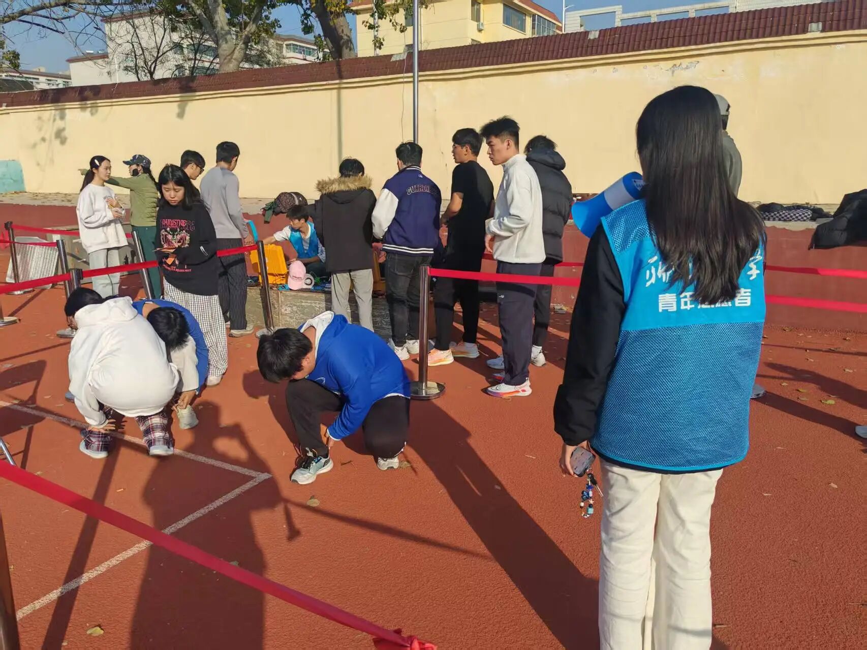 活动开始前,志愿者团队统一学习了体测的项目规则与考核要求,明确各项目的违规判定标准,如立定跳远的“踩线起跳”、仰卧起坐的“肩部未触垫”等,活动过程中,志愿者按体测项目分区值守:志愿者逐一核对引体向上的“下颌过杠标准”、仰卧起坐的“动作幅度要求”,及时制止“借力摆臂”“腰部拱起”等违规动作,并现场记录不规范行为;志愿者在800米/1000米跑的跑道旁设置打卡点,监督学生是否按规定路线完成、是否存在“中途停留超时”等情况;志愿者紧盯立定跳远的起跳线,对踩线、越线起跳的学生及时提醒并重新测试。同时,志愿者还同步记录各学生的测试完成度,对未按计划完成训练量的学生进行督促,确保训练流程与体测标准保持一致。活动结束后,通过问卷调查、现场交流等方式收集测试者对活动的意见和建议为后续活动改进提供参考。