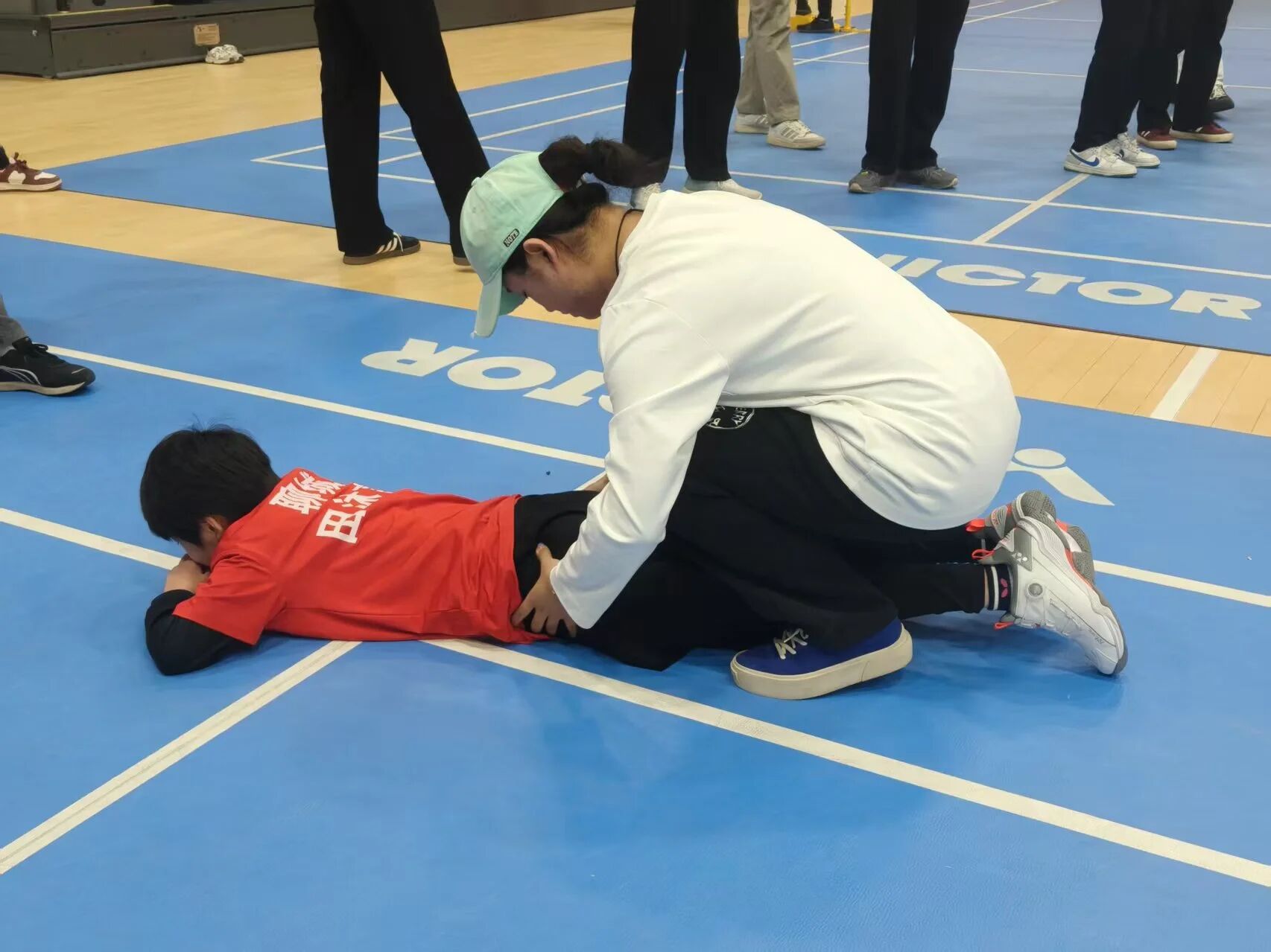 活动伊始,介绍活动主题、目的及核心流程。活动过程中,运动康复专业同学认真细致地讲解科学规范的动态热身方法与具体步骤,带领小运动员们有序开展热身准备;同时科普常见运动损伤的诱发因素,耐心解答运动护具选择、损伤预防及轻微不适处理等疑问。活动尾声,组织实操演示,指导小运动员们相互进行放松练习,重点纠正动作发力模式,确保操作规范。运动康复专业同学以专业实用的知识技能,助力每位热爱运动的参与者有效减少关节损伤,安全享受运动乐趣。