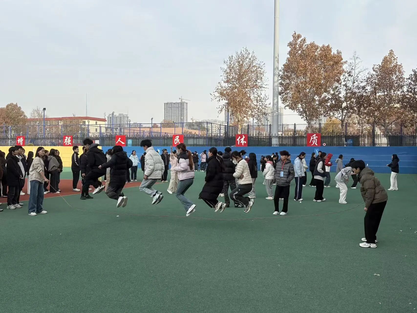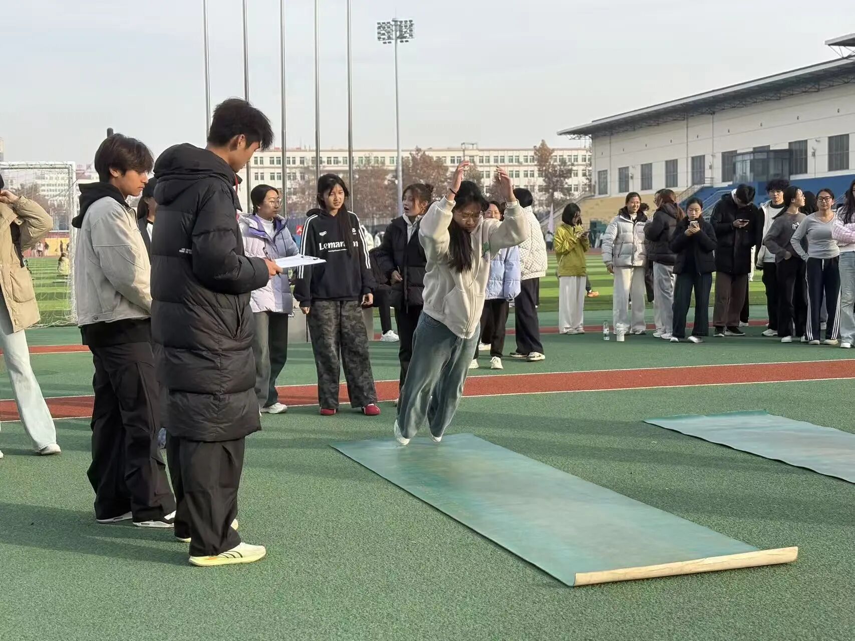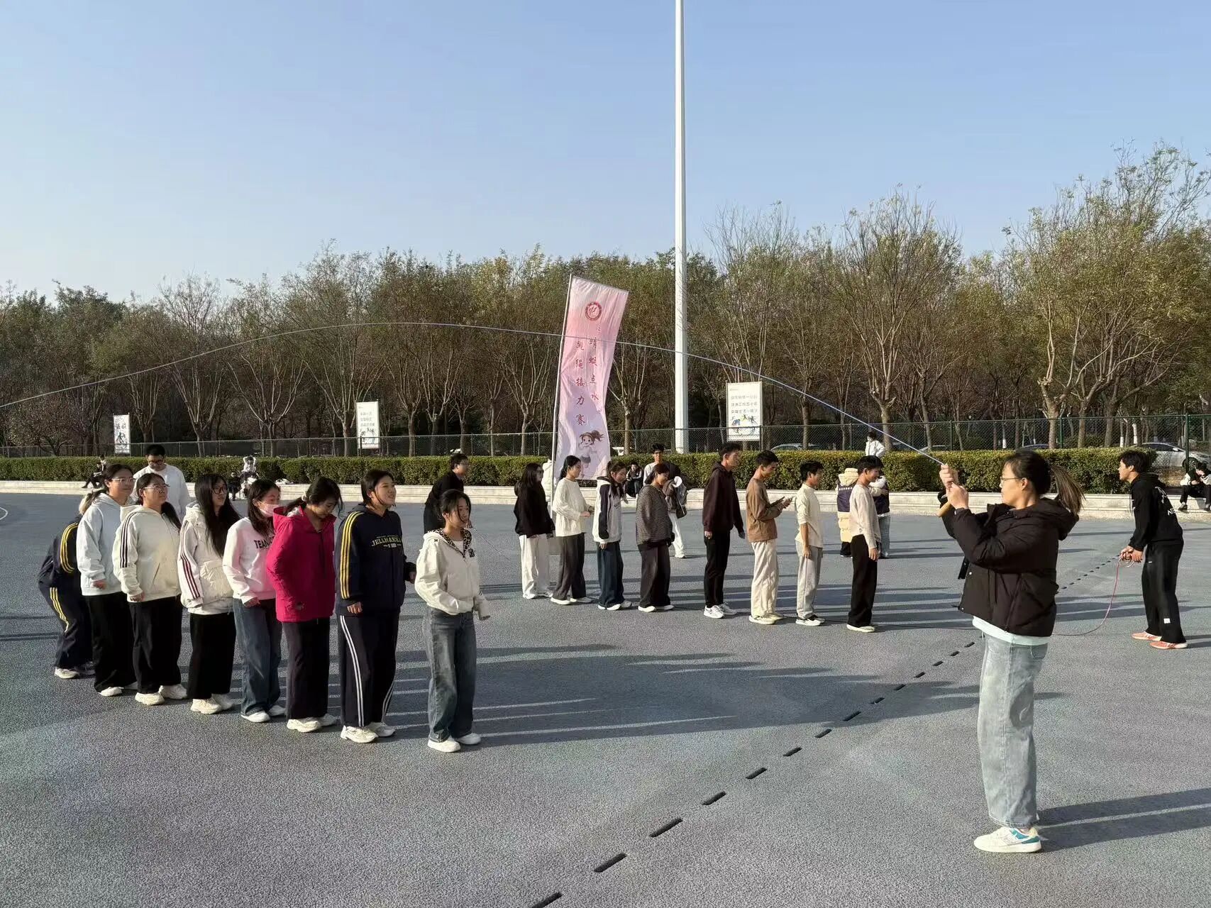 赛事共设置六大项目,包括“穿越障碍”耐力接力跑、“蜻蜓点水”跳绳接力赛、“一跃千里”立定跳远团队赛等,所有项目均为团体赛,强调团队协作与集体荣誉。学生在比赛中不仅锻炼了身体,更学会了沟通、信任与配合,展现了新时代大学生良好的精神风貌。