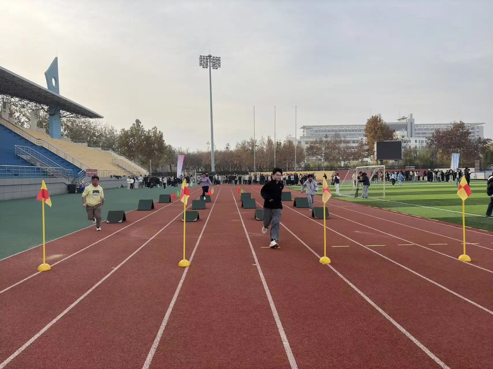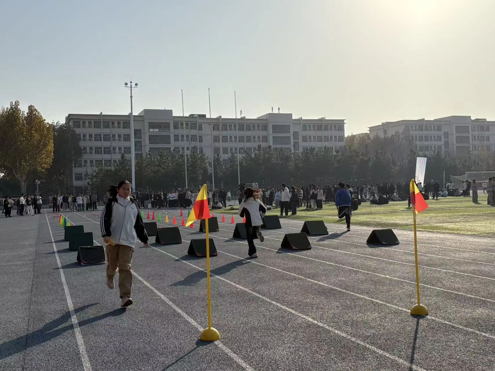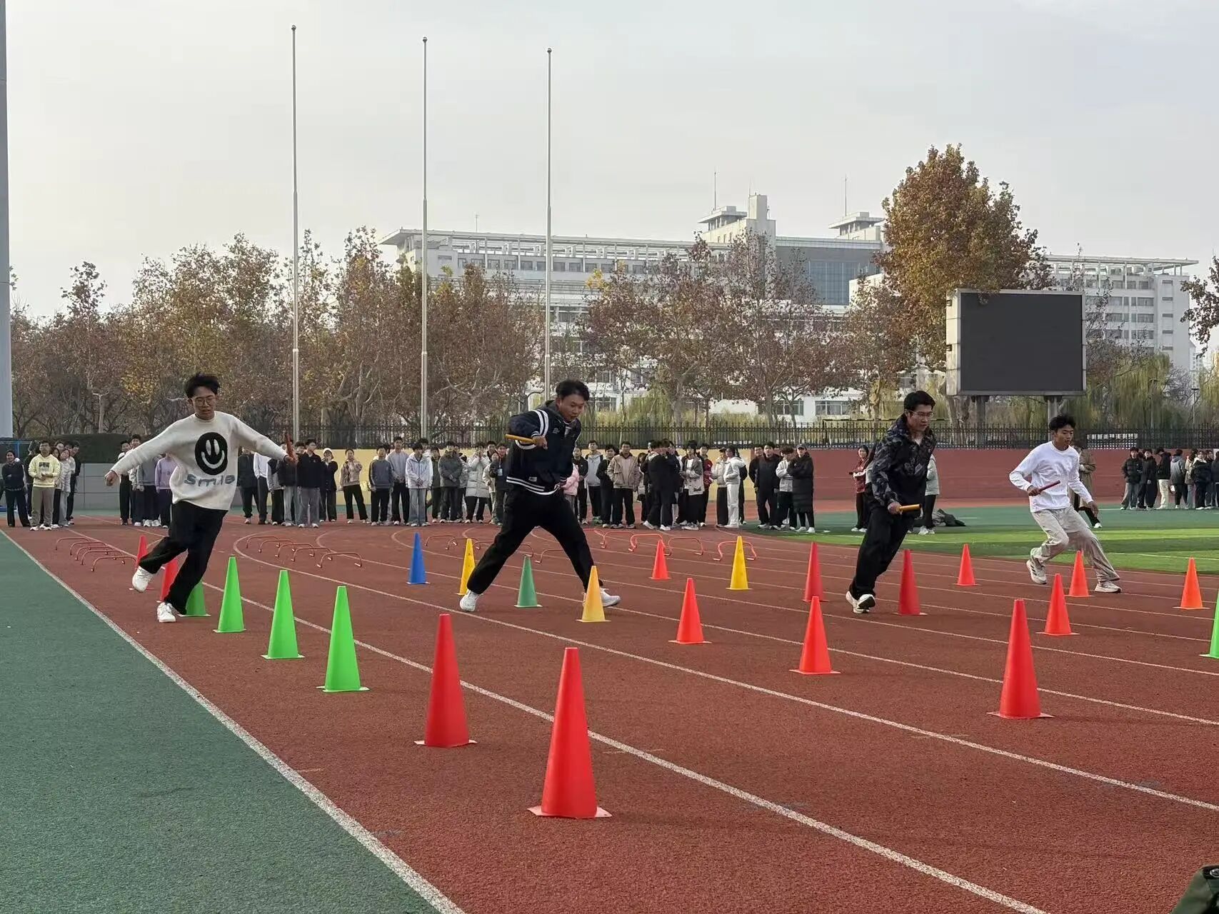 赛事共设置六大项目,包括“穿越障碍”耐力接力跑、“蜻蜓点水”跳绳接力赛、“一跃千里”立定跳远团队赛等,所有项目均为团体赛,强调团队协作与集体荣誉。学生在比赛中不仅锻炼了身体,更学会了沟通、信任与配合,展现了新时代大学生良好的精神风貌。