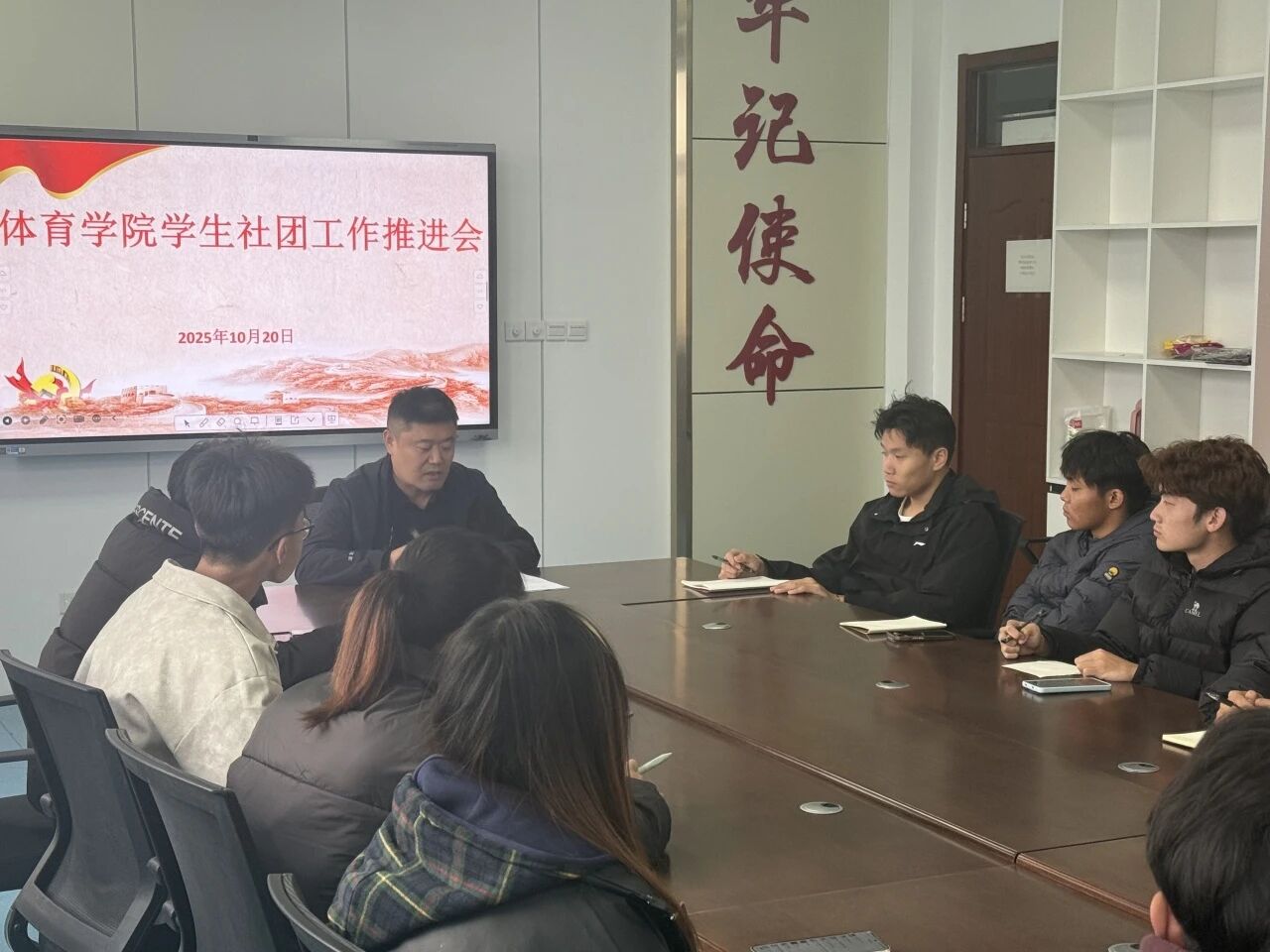 为贯彻落实学校团委关于加强学生体育社团建设的部署要求,10月20日,永乐高60net于党员活动室召开学生社团工作推进会。学院团委书记、社团发展部及各体育社团负责人参加会议。